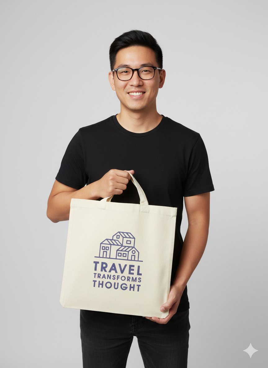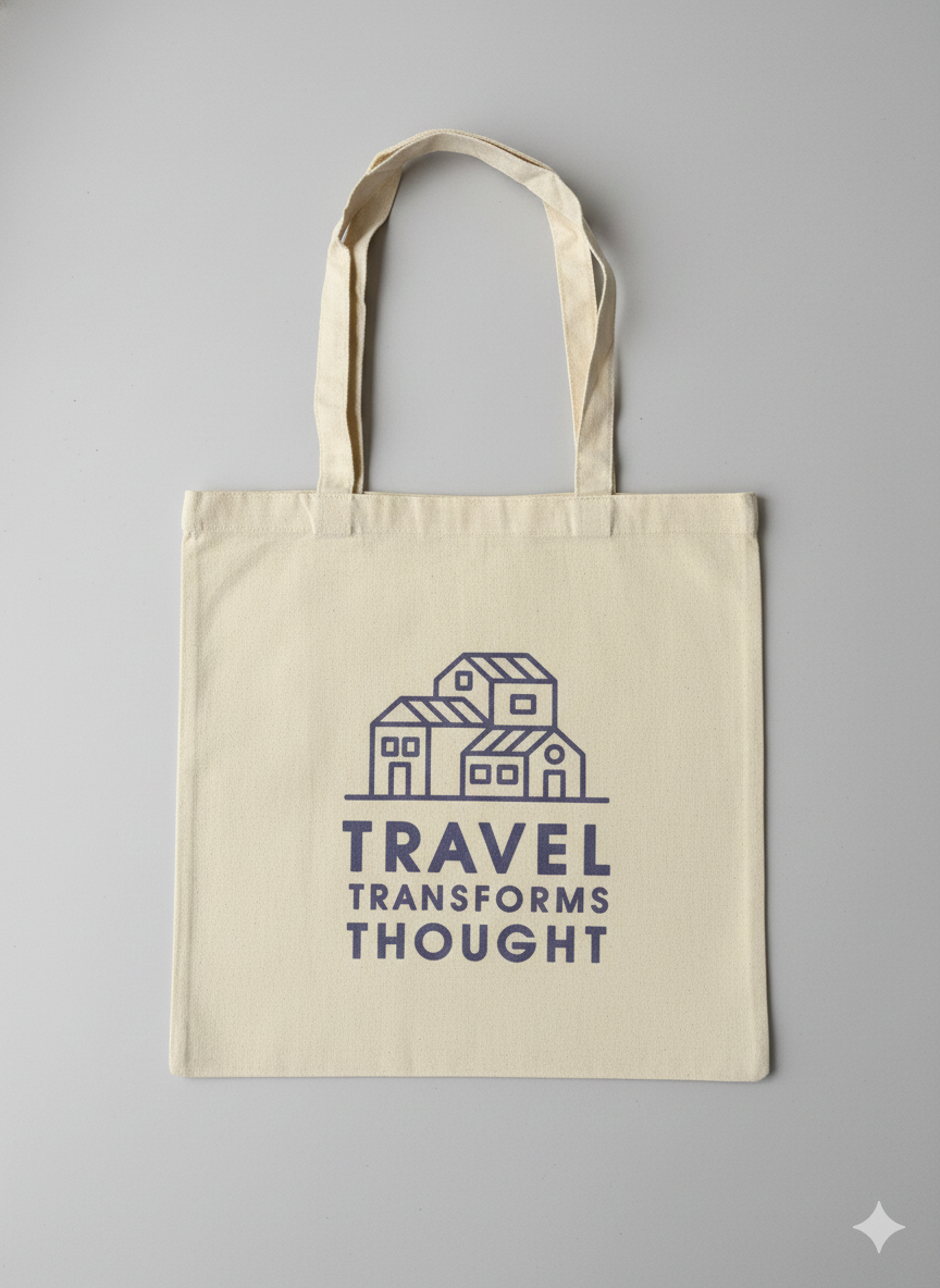 Reusable cotton canvas tote bag featuring the Pause and Reflect Foundation lavender logo Travel Transform Thought. This lightweight, unisex tote is designed for everyday use including shopping, events, errands, and promotional distribution. Constructed from durable plain-weave cotton canvas with dual shoulder straps for comfortable carrying. Intended for reuse and general non-food storage.